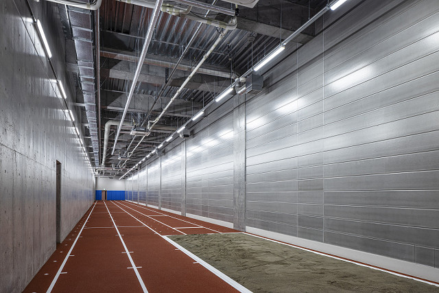 体育大学の中心的な施設である体育館としての機能だけでなく、学生同士の交流を生み出す仕組みがちりばめられた空間になっている。